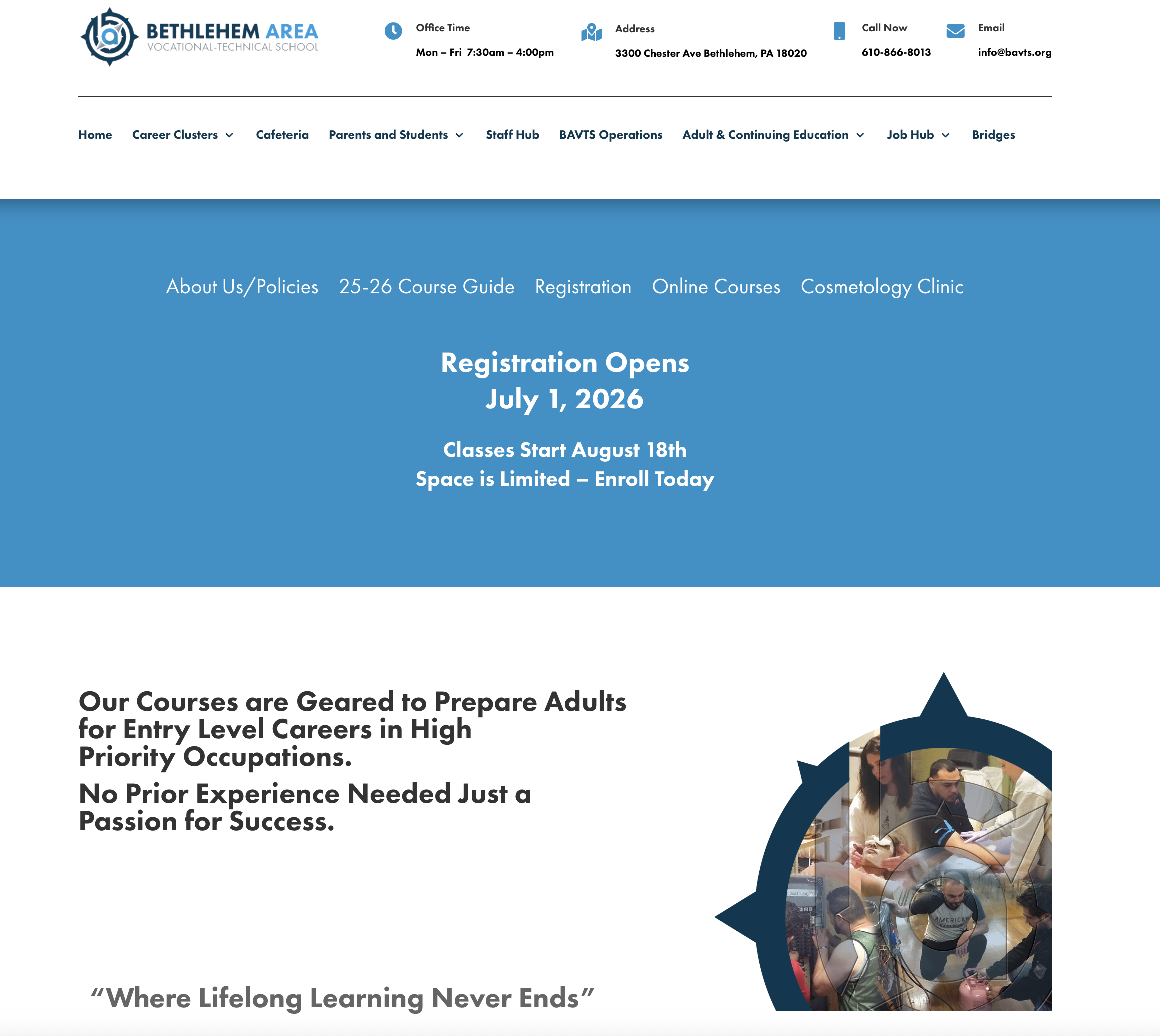 This was a team effort, I was in charge of the Adult Education page and the pages inside it.